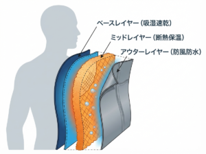 アウトドア業界で確立されている3層構造が最も効果的です:
